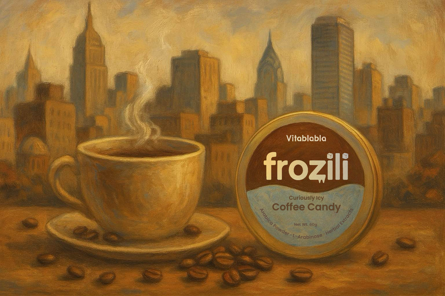Frozili is an icy cool coffee candy that melts in your mouth with a bold coffee kick and a refreshing chill.