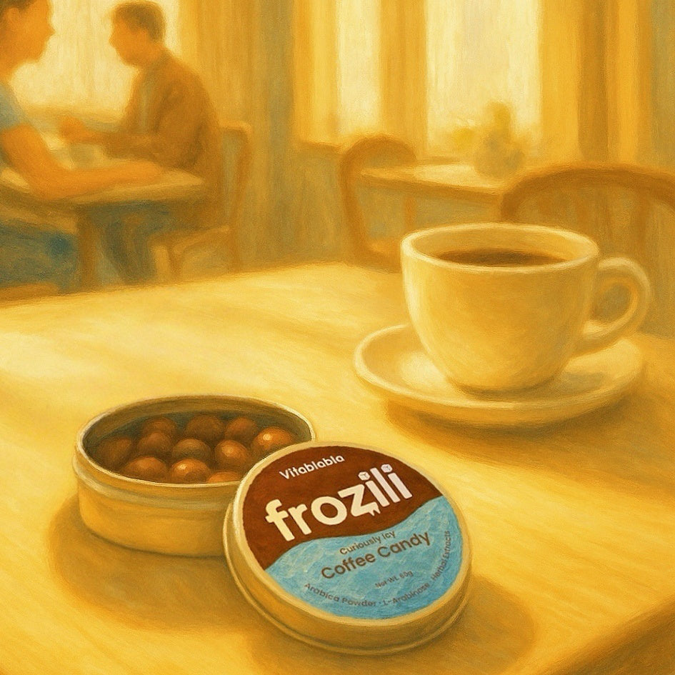 We started with Frozili, our icy coffee candy, because we wanted something cool, satisfying, and energizing — a little indulgence that fits in your pocket. But this is just the beginning.